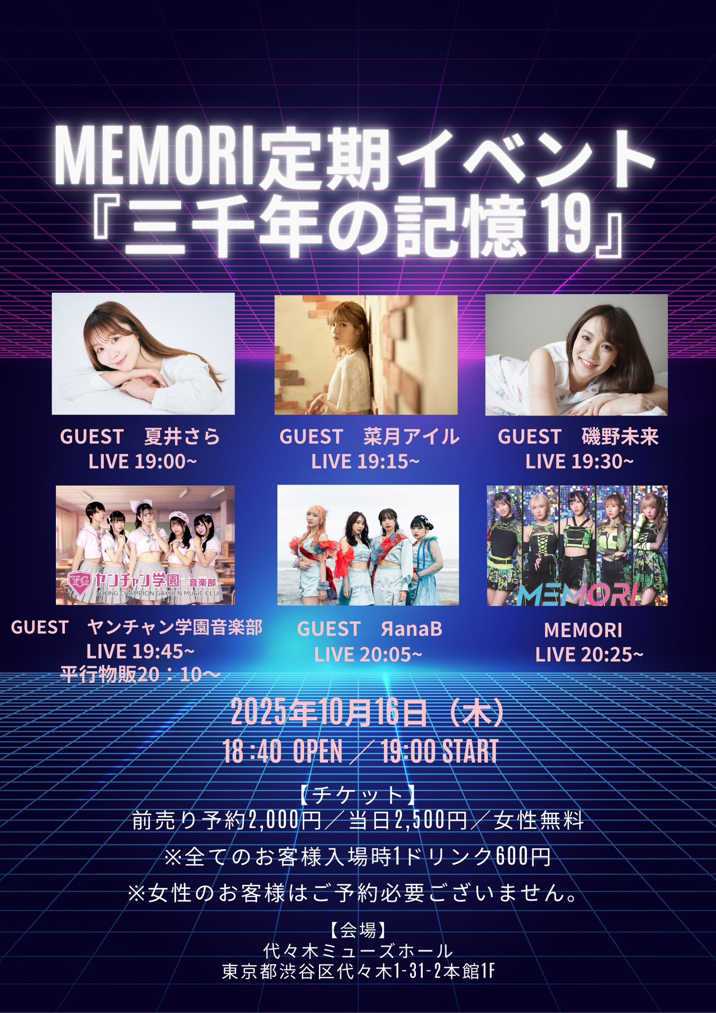 前売り¥2,000 当日¥2,500 女性無料 +各1D